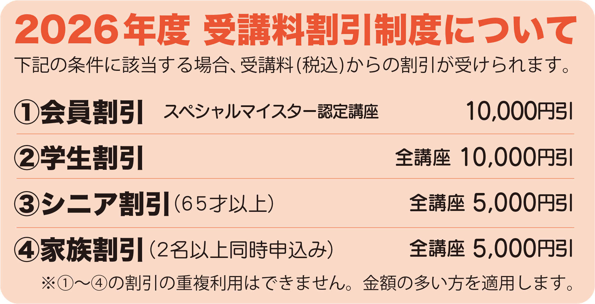 | 受講料 | 備考 |